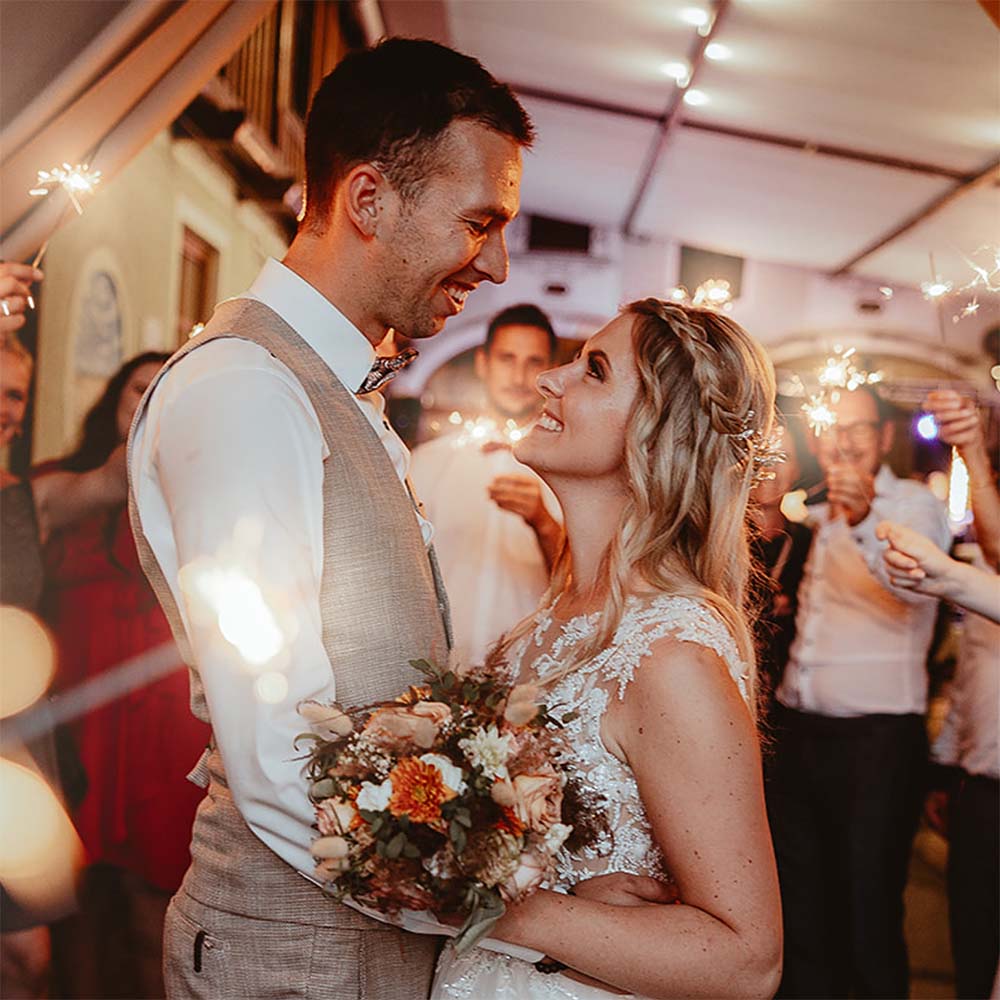 Bereits beim Kennenlernshooting hat er eine entspannte Atmosphäre geschaffen, in der wir ganz wir selbst sein konnten – und genau das sieht man auf den Bildern. Vor unserem großen Tag war er immer erreichbar, hat sich Zeit genommen und uns mit wertvollen Tipps unterstützt.